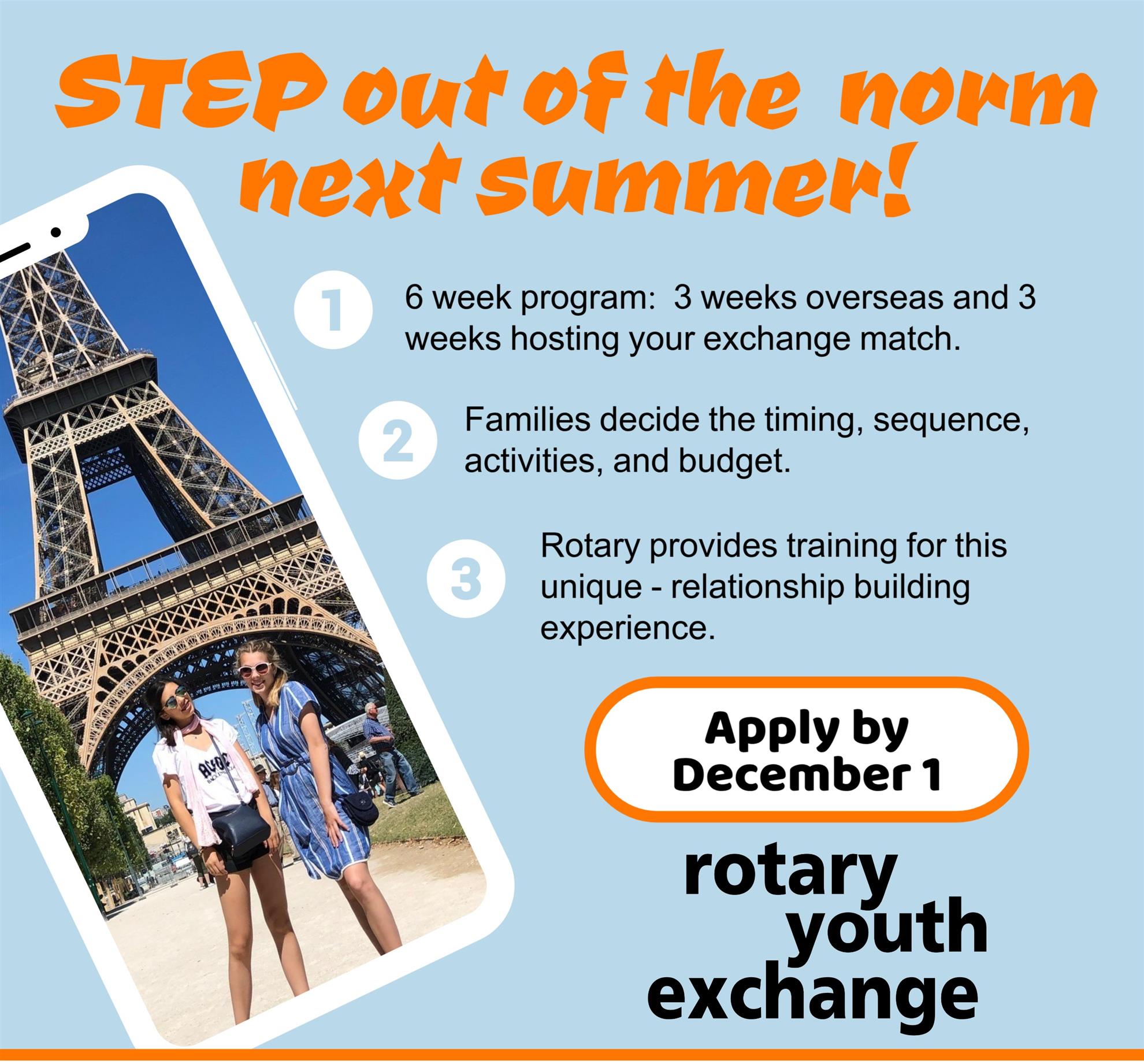 Then you and your family will reciprocate and host them in your home. For more information download the 2026 Short Term Exchange Program FAQ’s sheet.